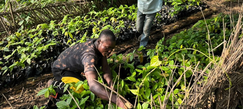 The planting of cocoa tress has moved forward rapidly in the village of Duma. The tree planting supervisor, Djibrill Bisambu,